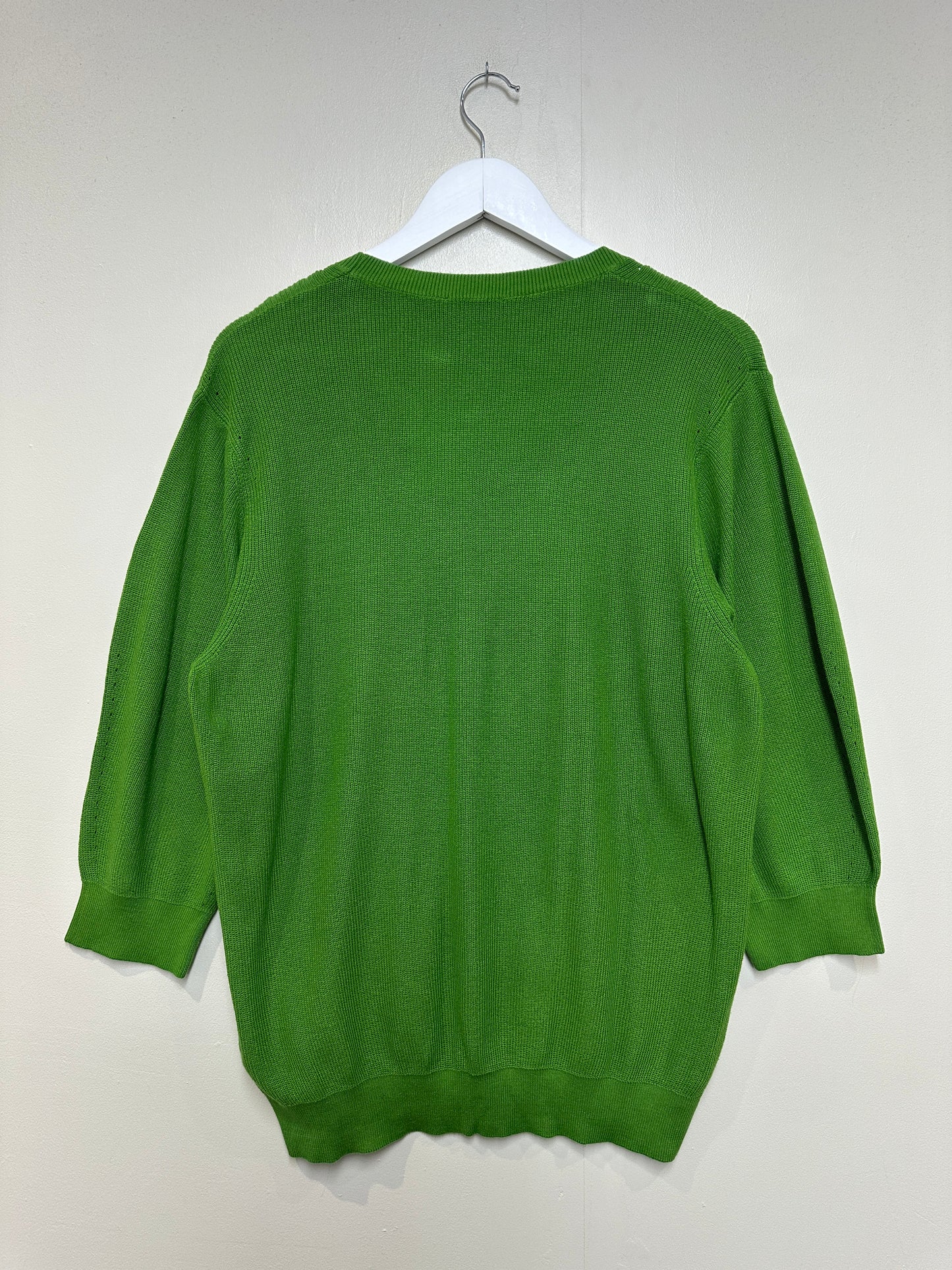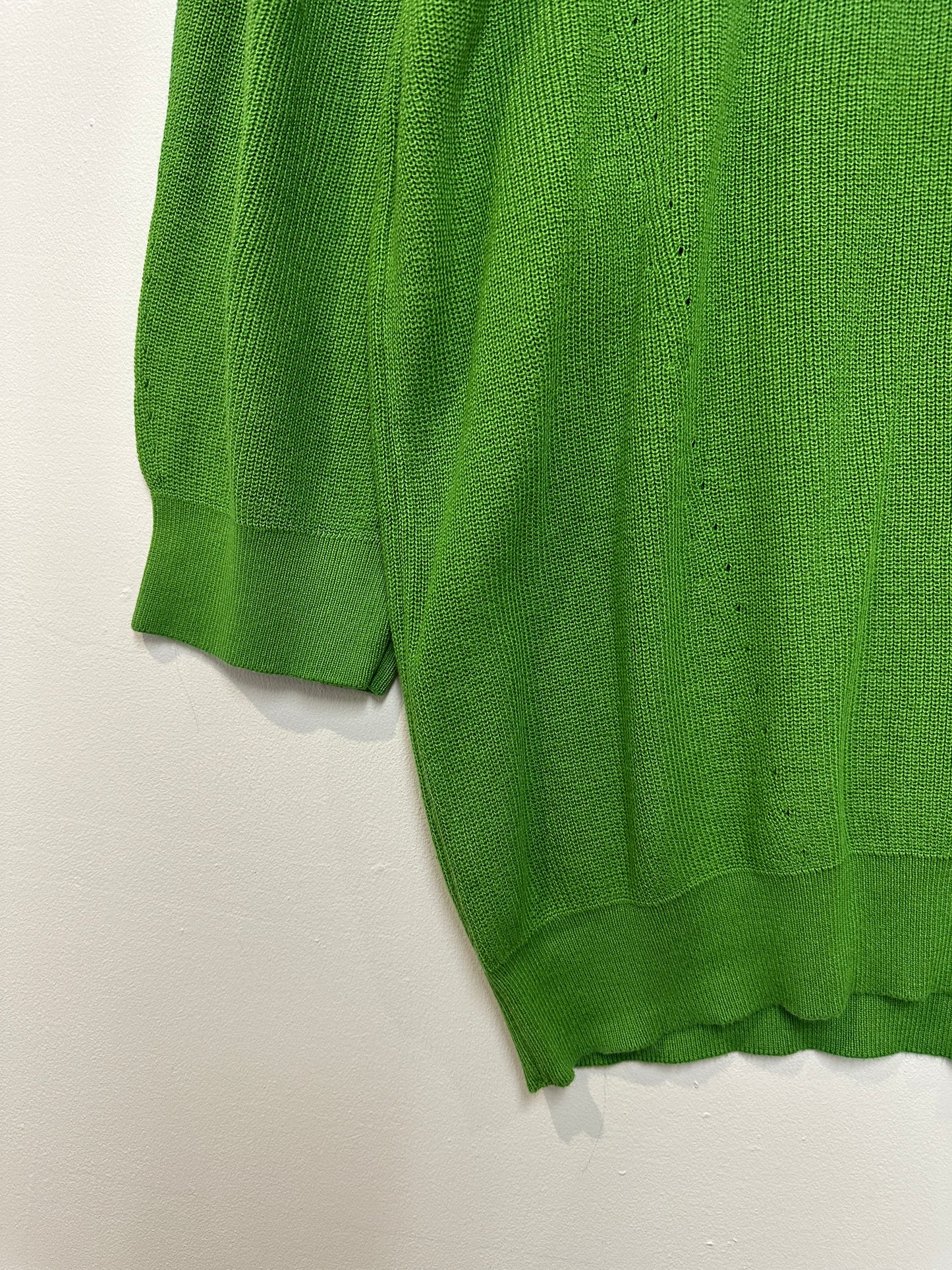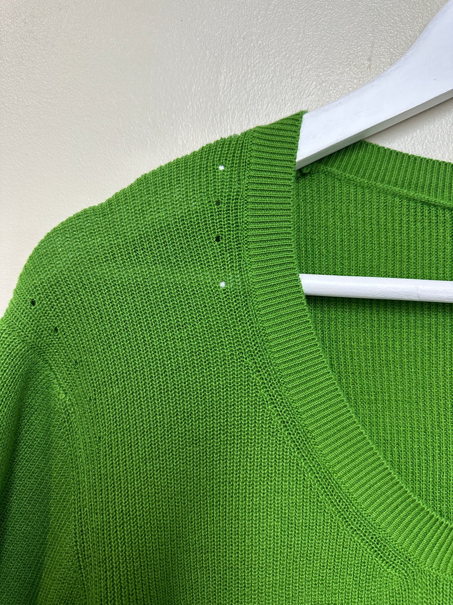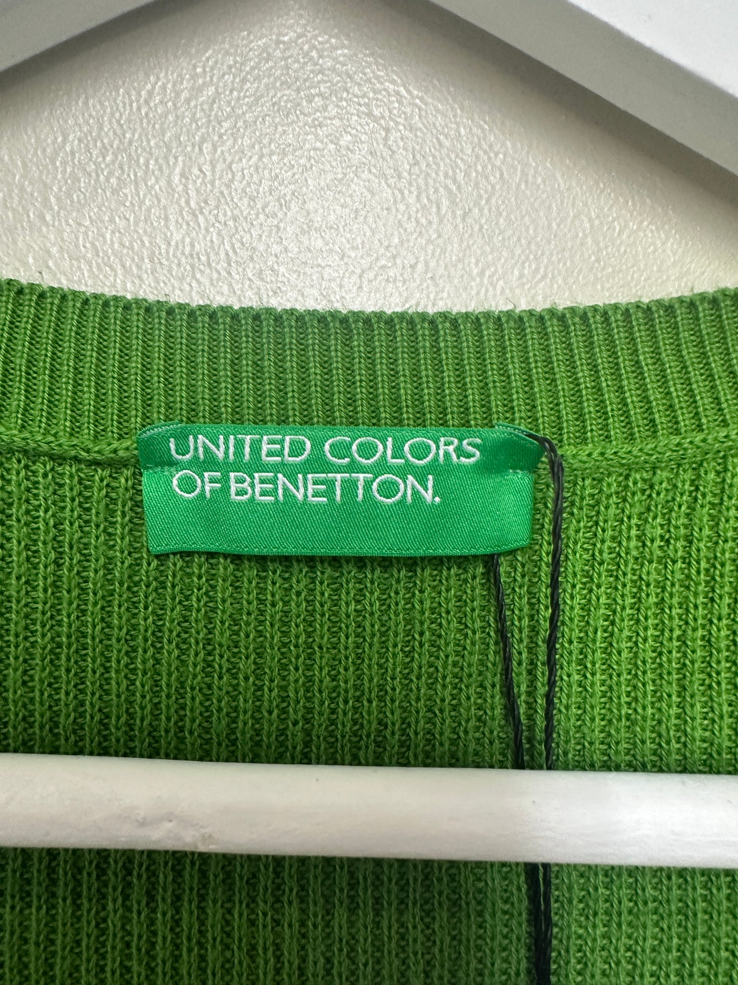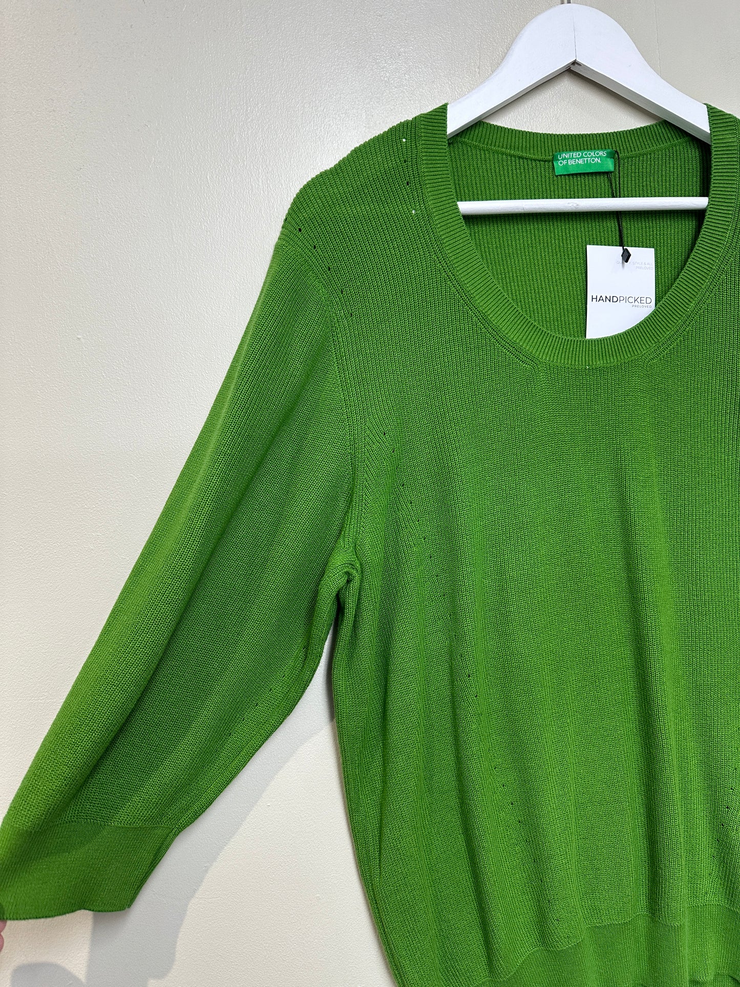 Benetton Green Cotton Round Neck Fine Knit Jumper
