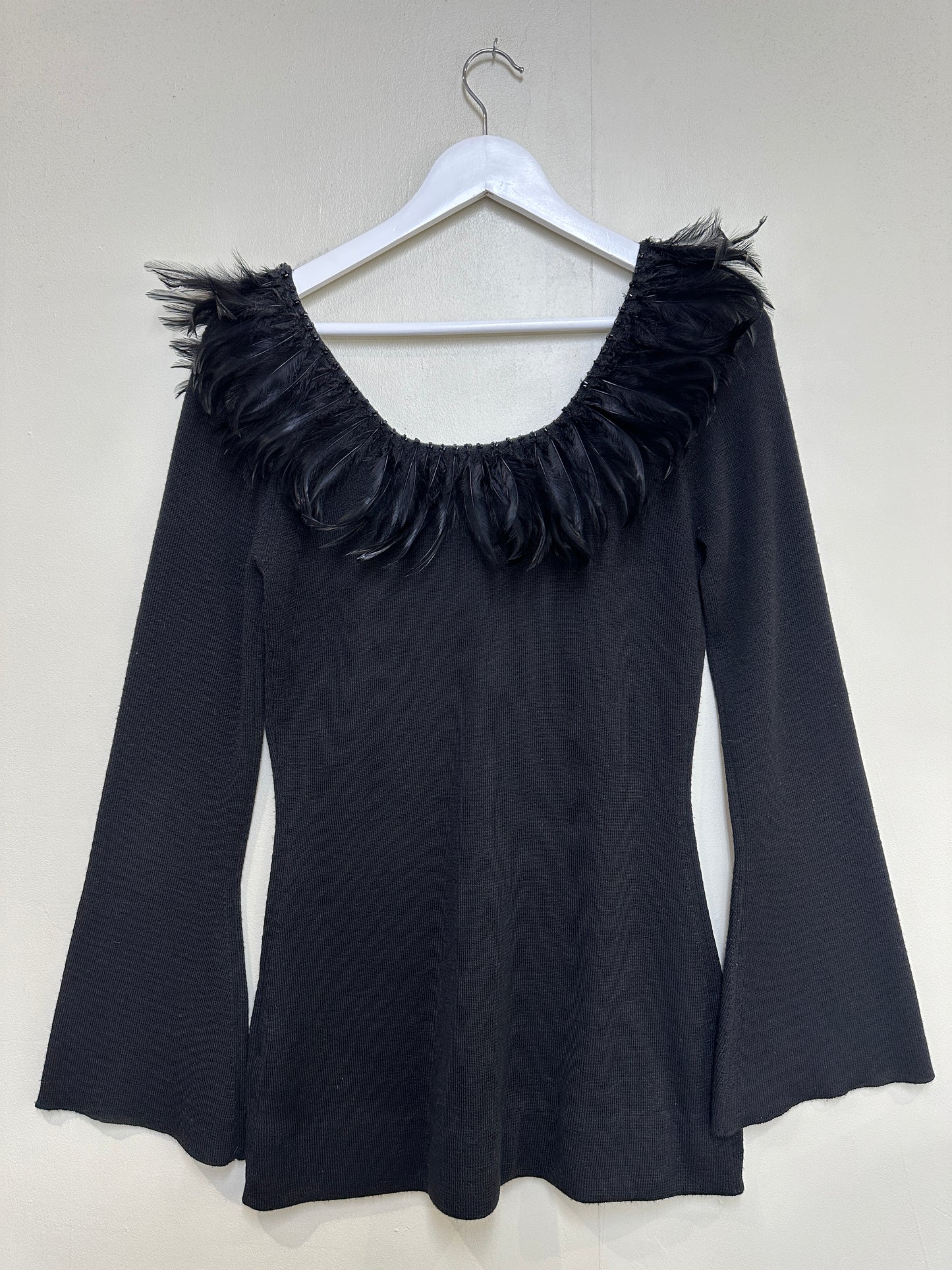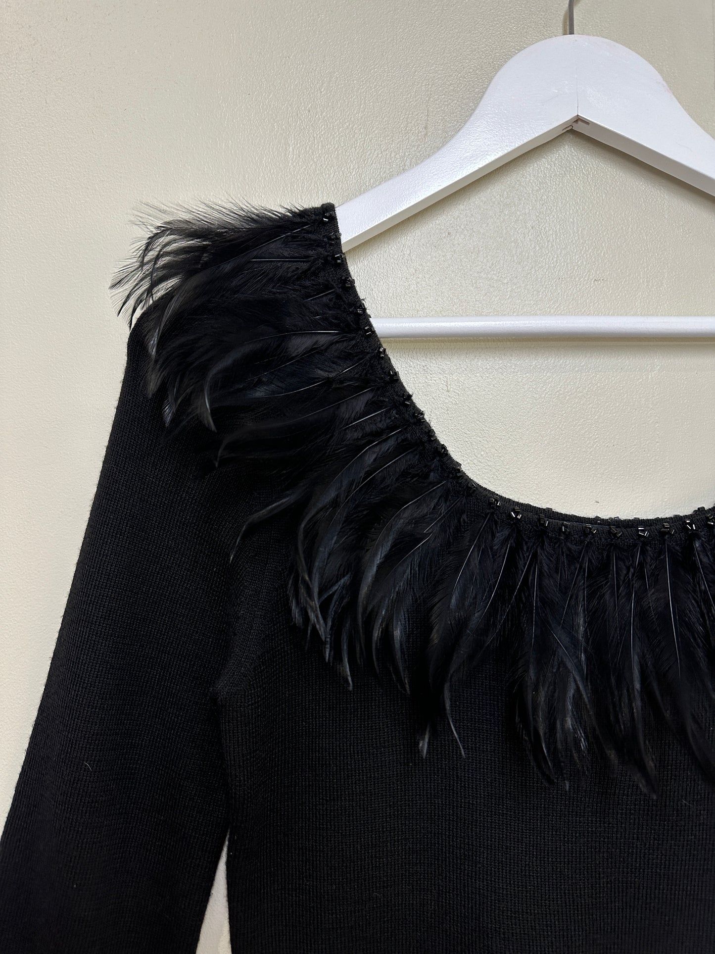 Kapalua Black Feather Shoulder Merino Wool Blend Jumper