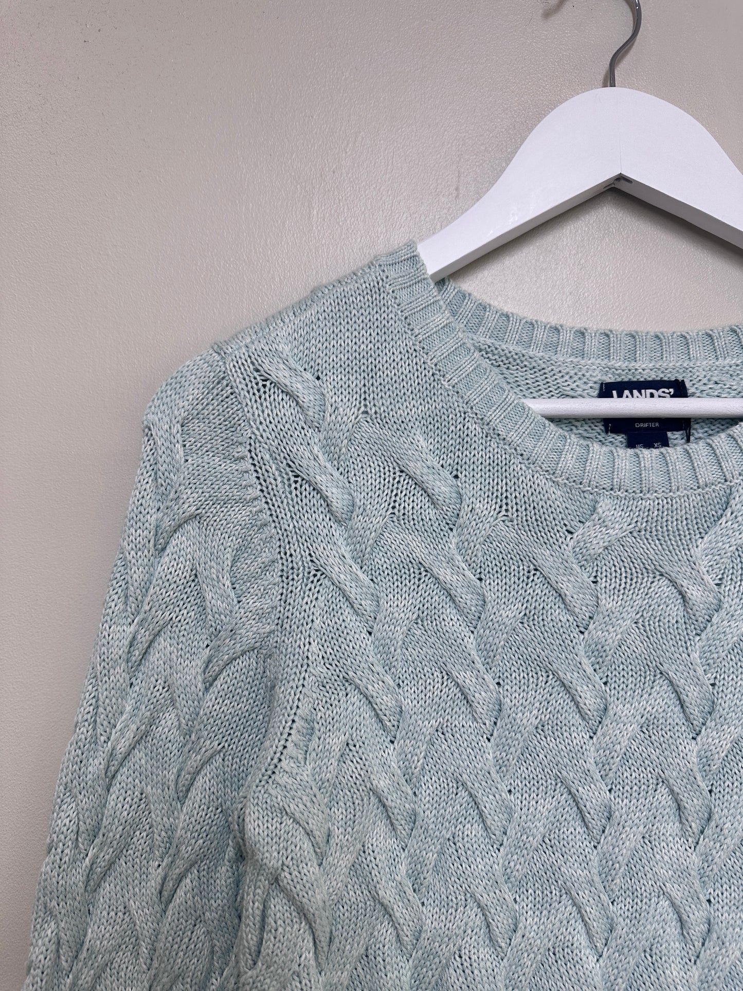Lands End Blue Drifter Cable Jumper