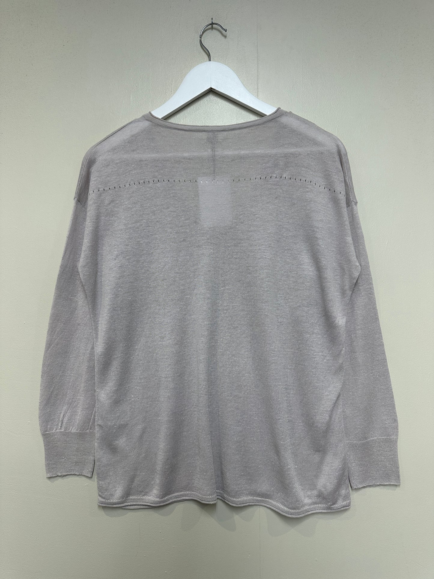 Poetry Grey V-Neck Linen Fine Knit Jumper