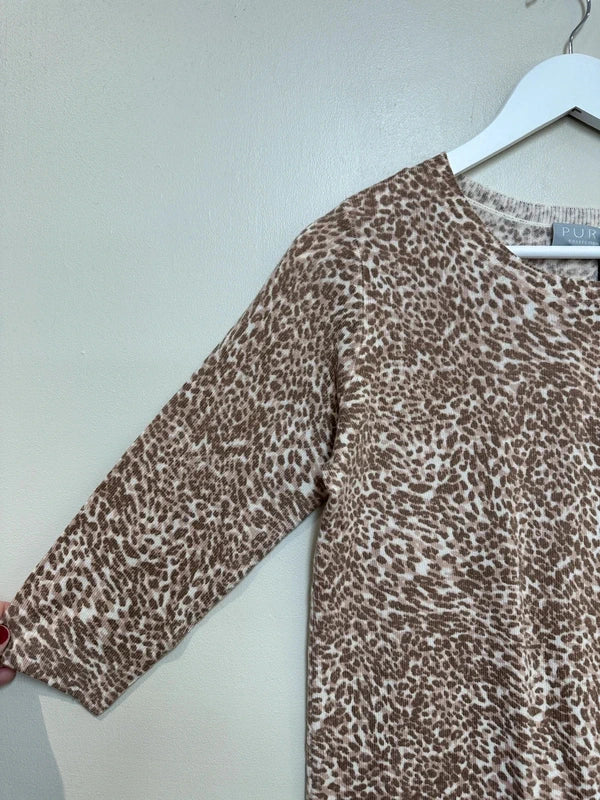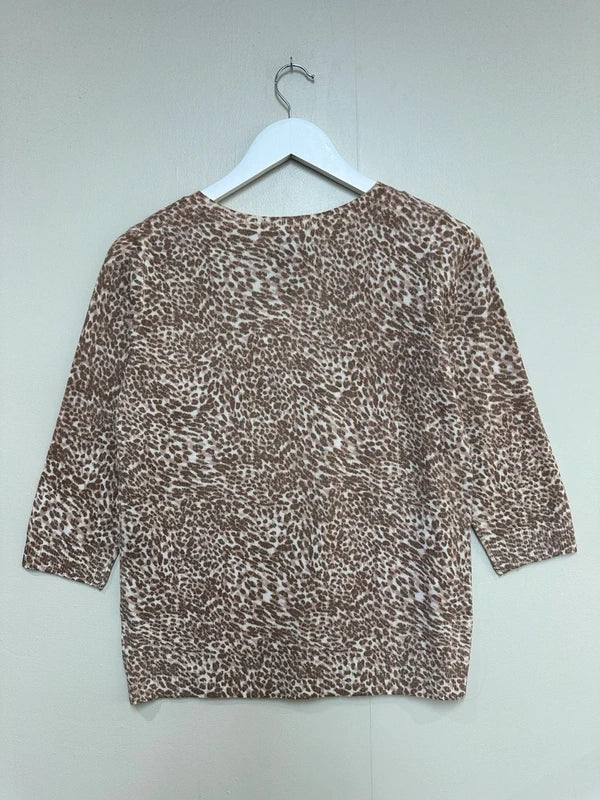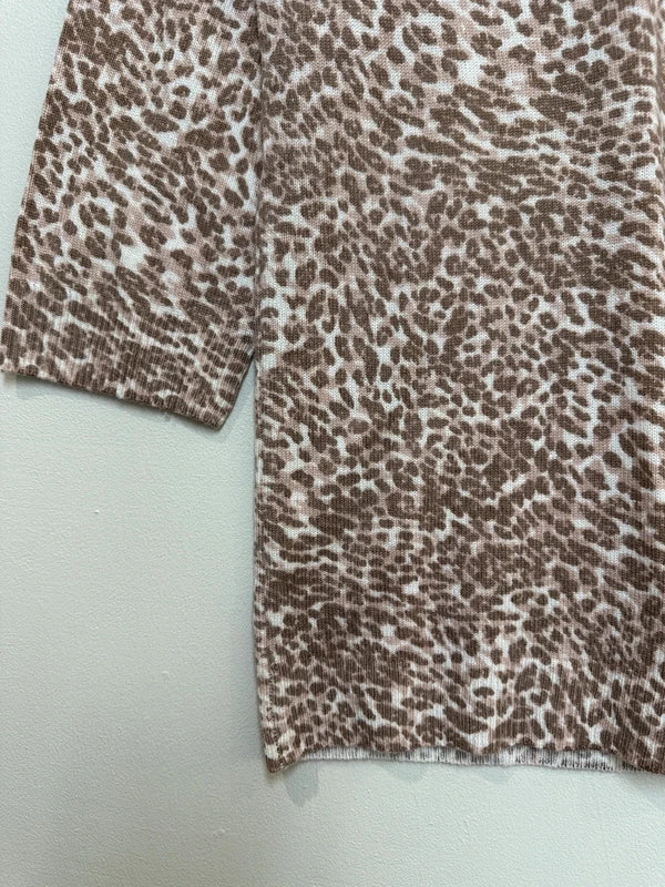 Pure Collection Brown Animal Print Fine Knit Cashmere Top