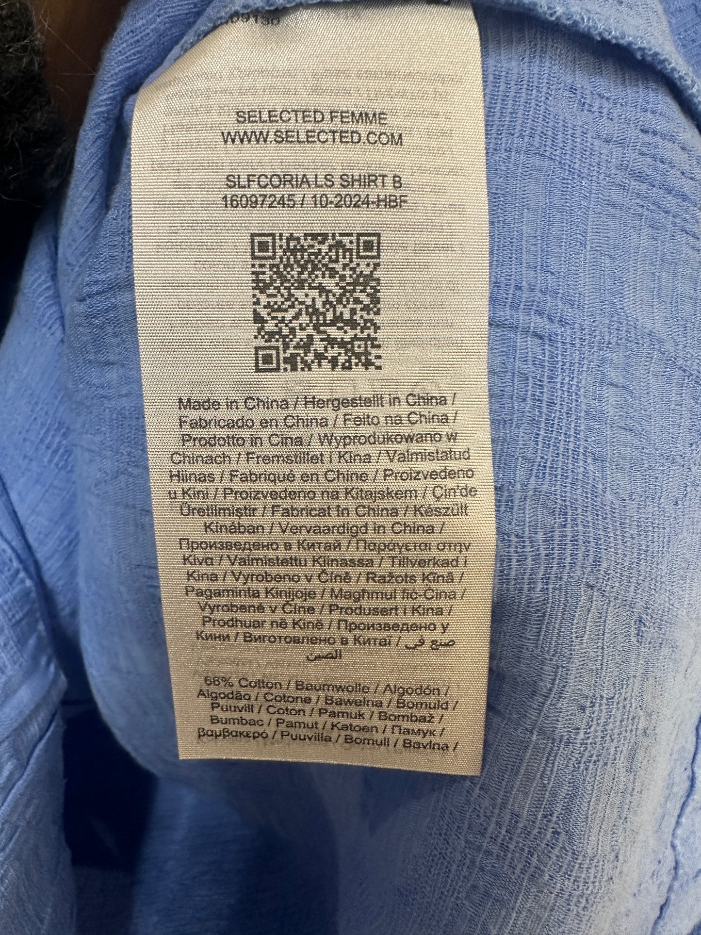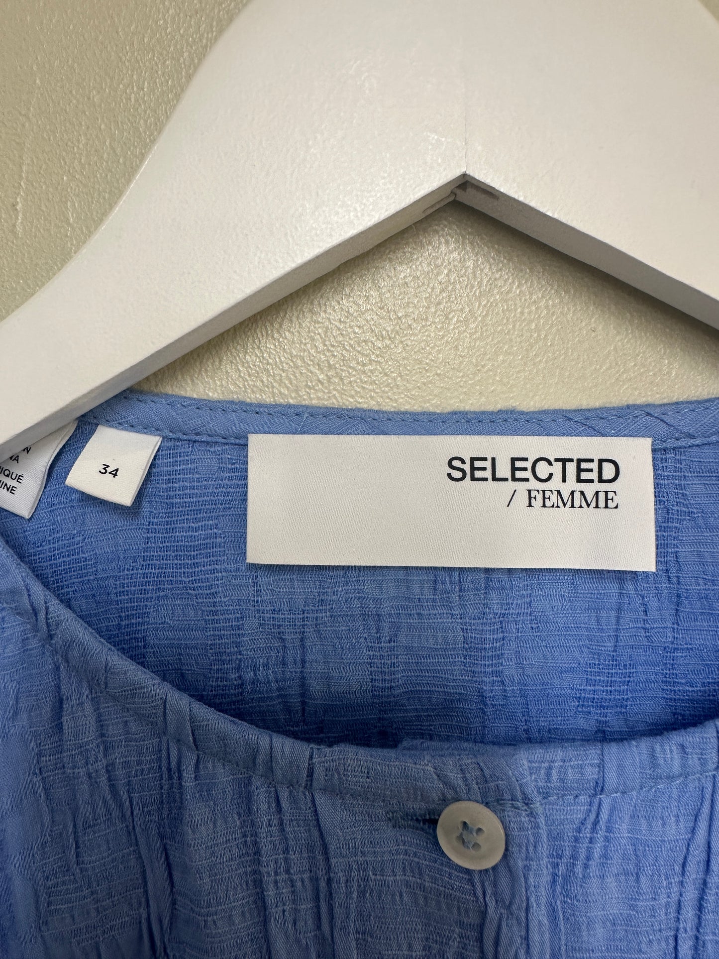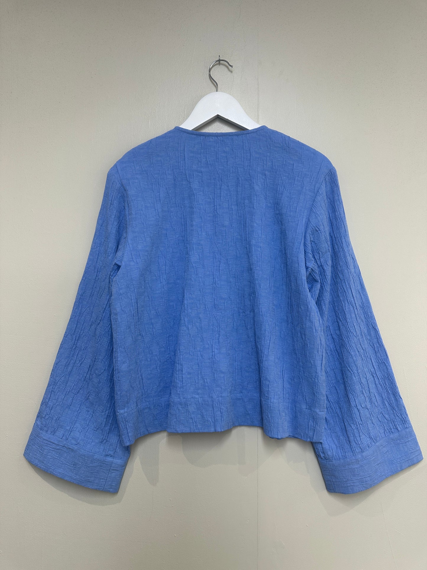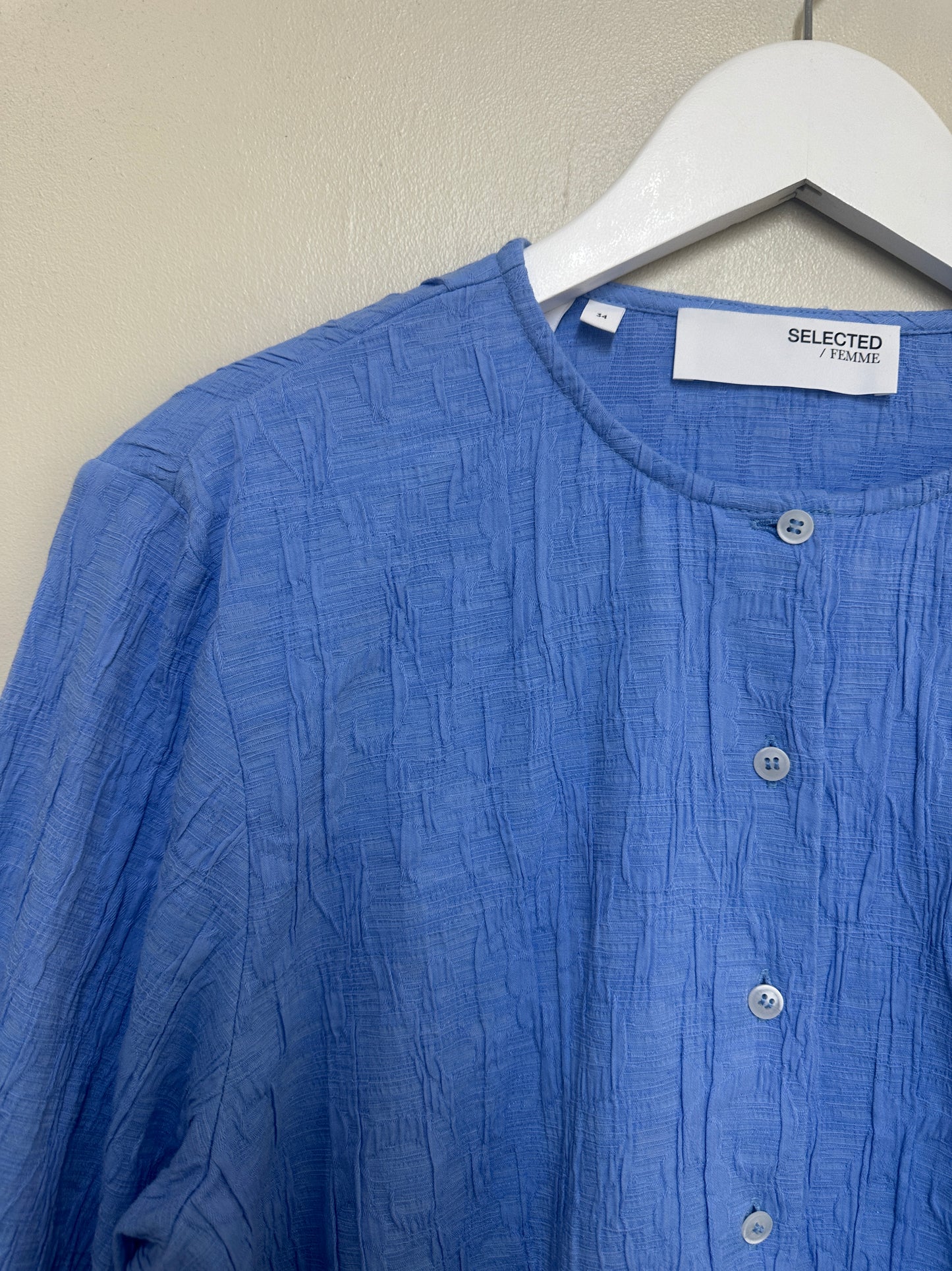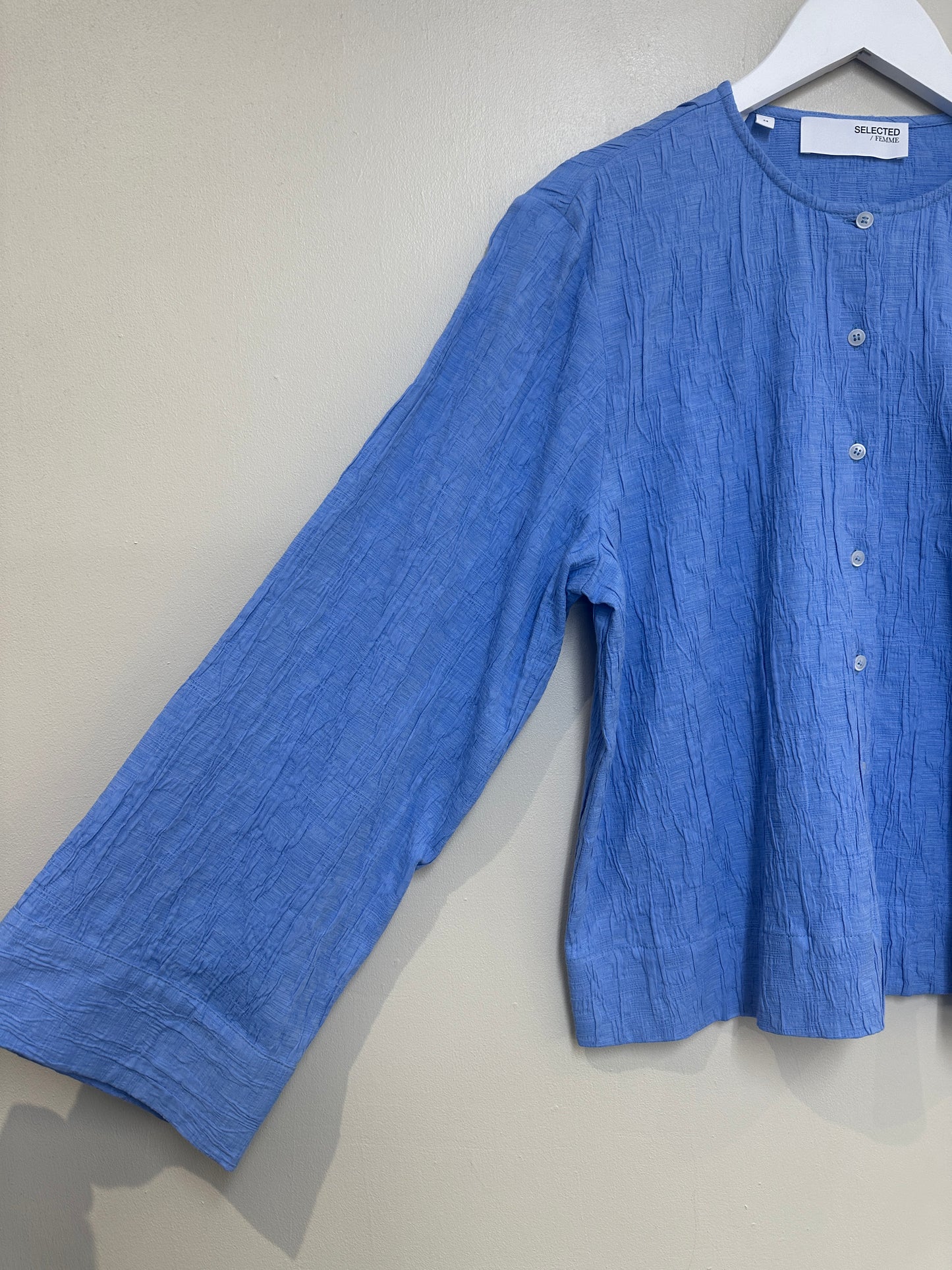 Selected Femme Blue Textured Wide Sleeve Button Front Blouse