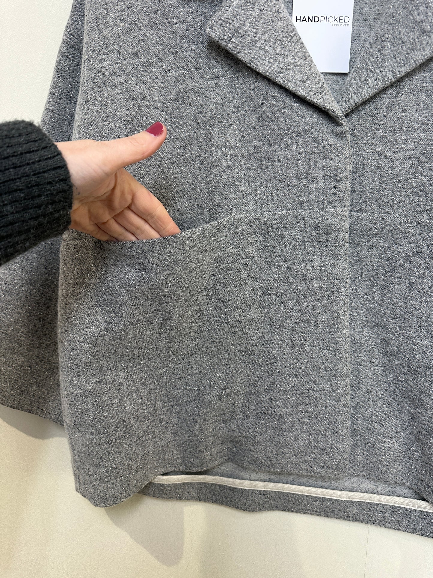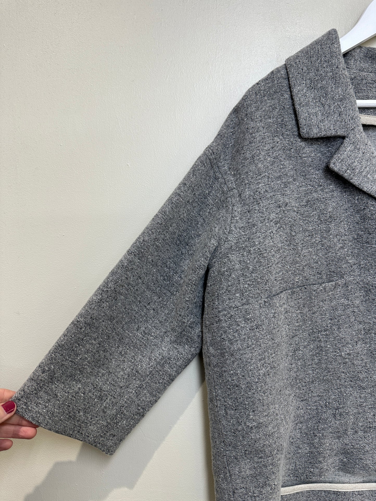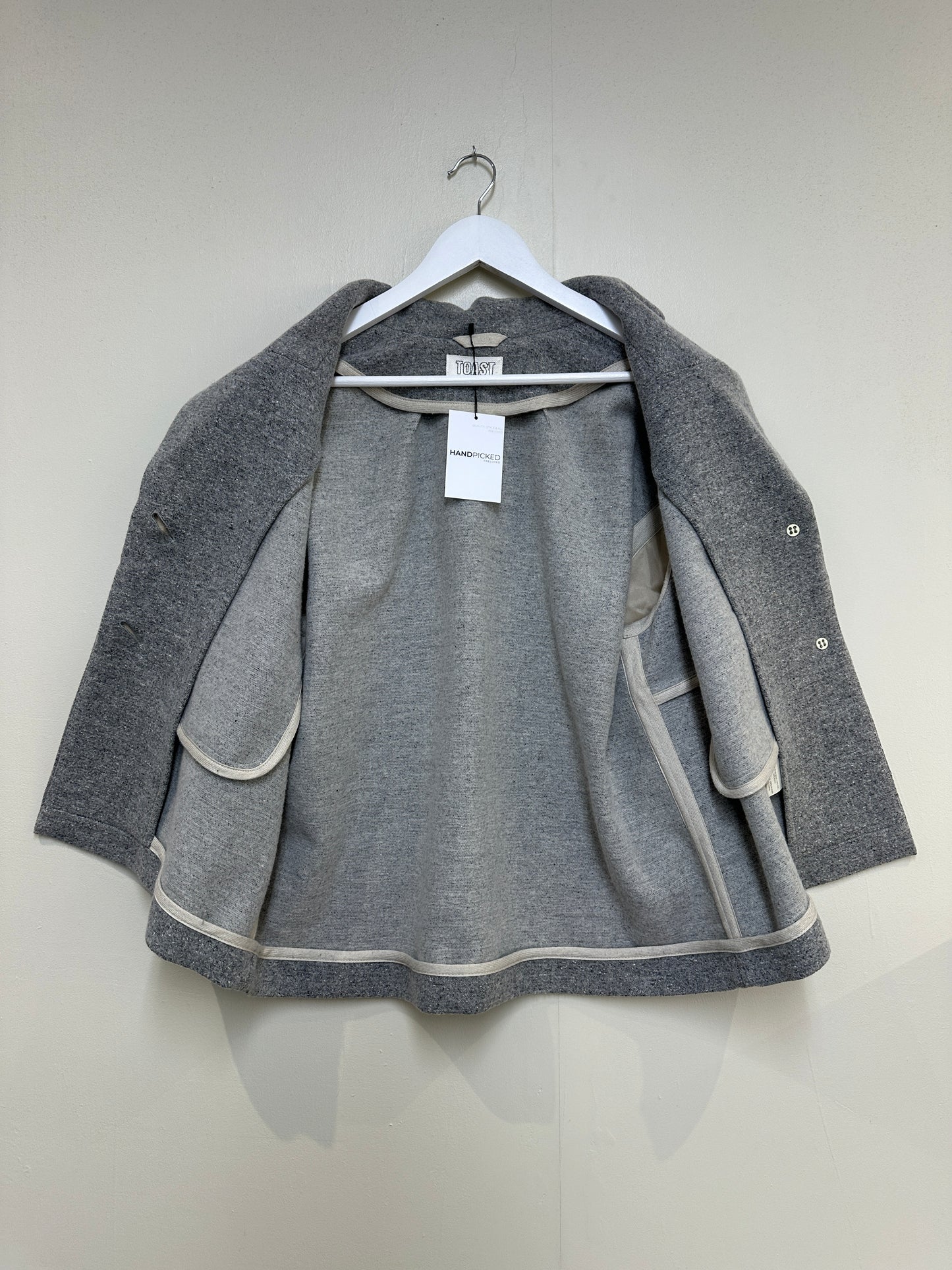 Toast Grey Wool Silk Blend Boxy Cropped Jacket