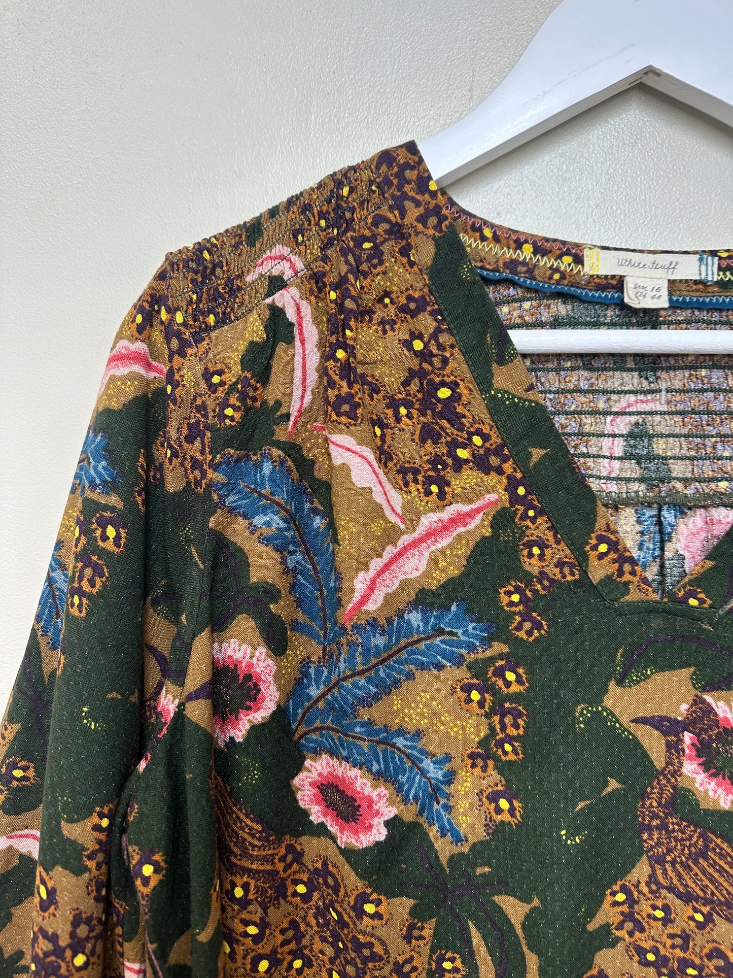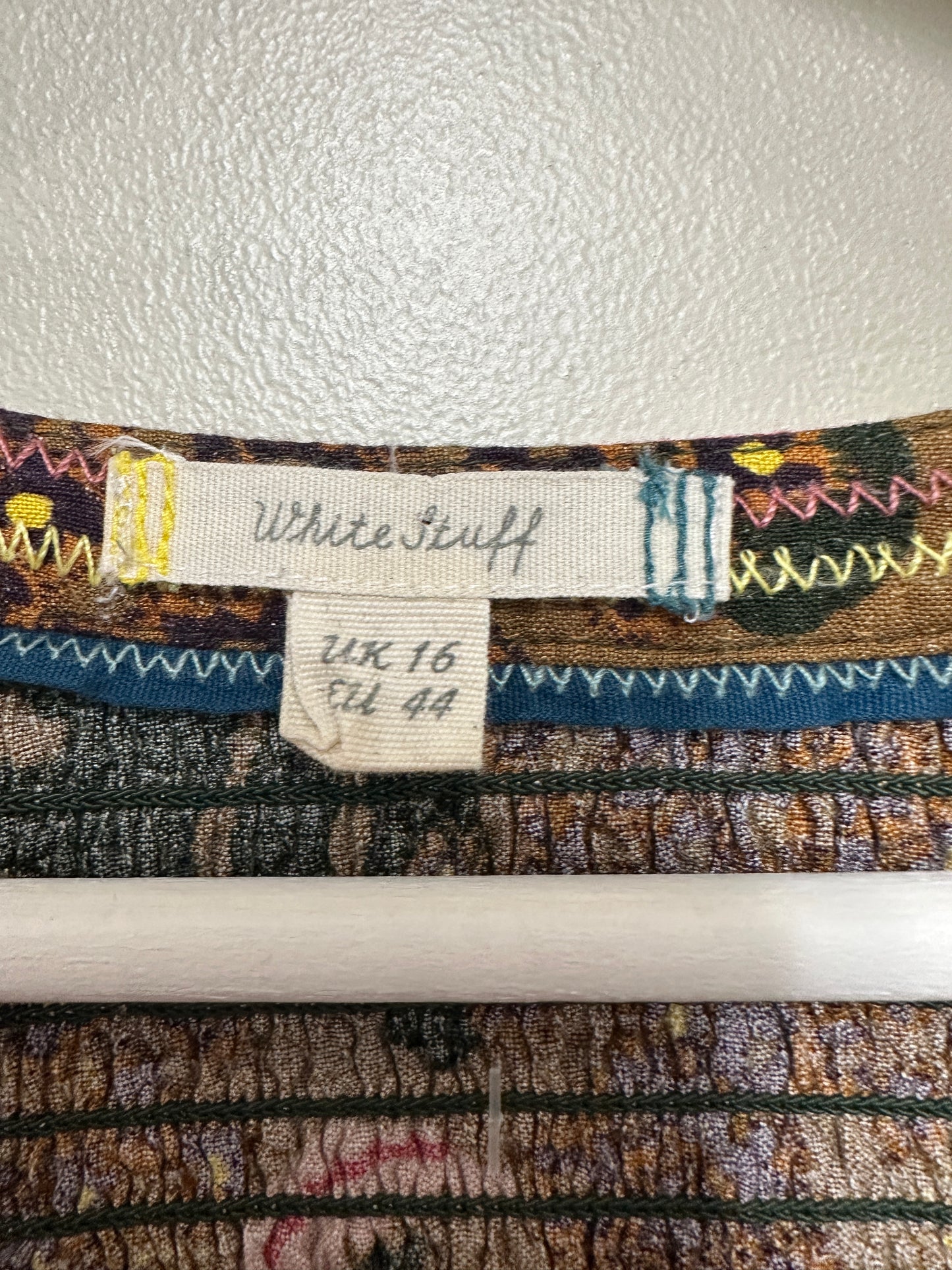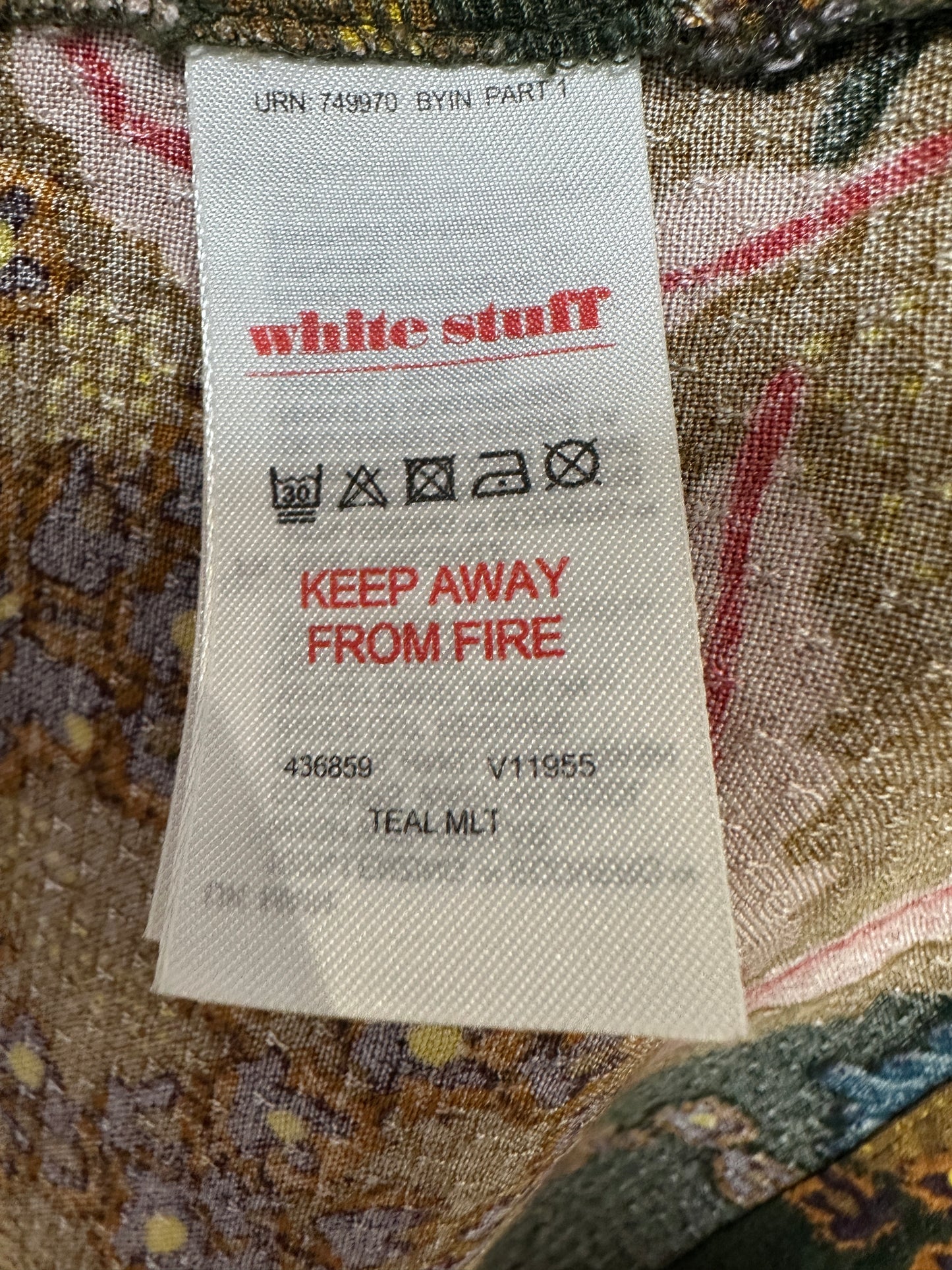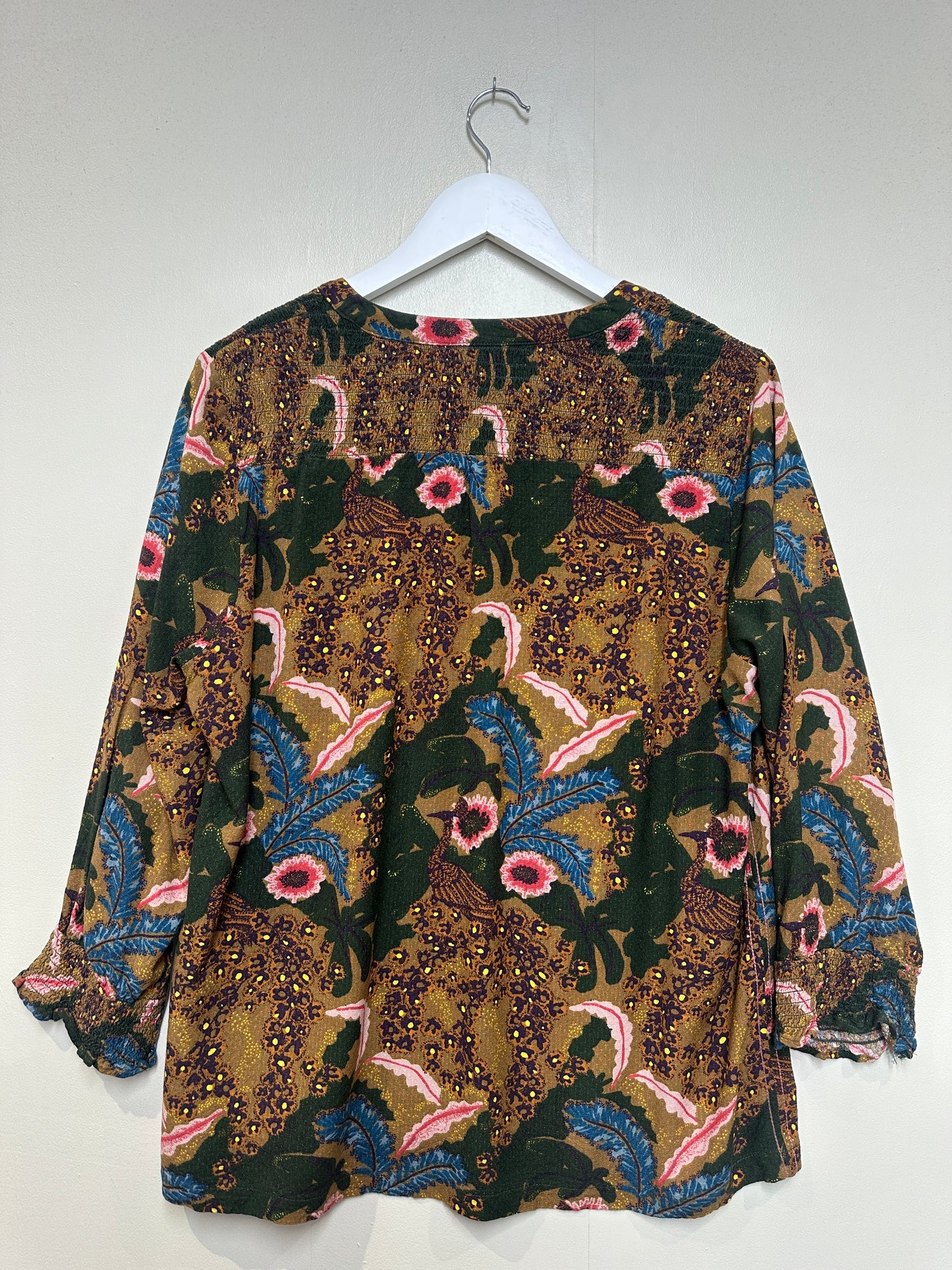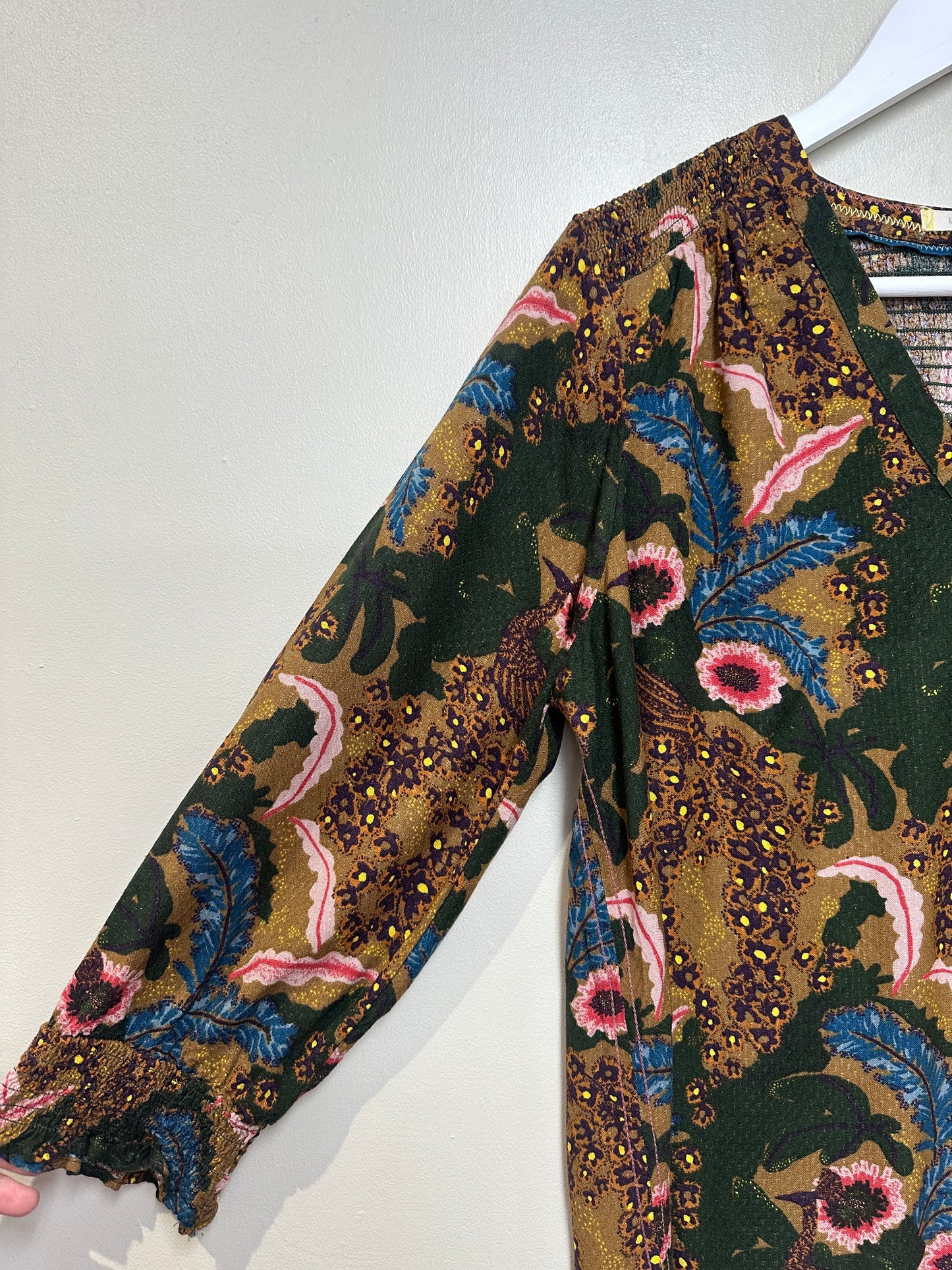 White Stuff Green mix V-Neck Shirred Cuff Blouse